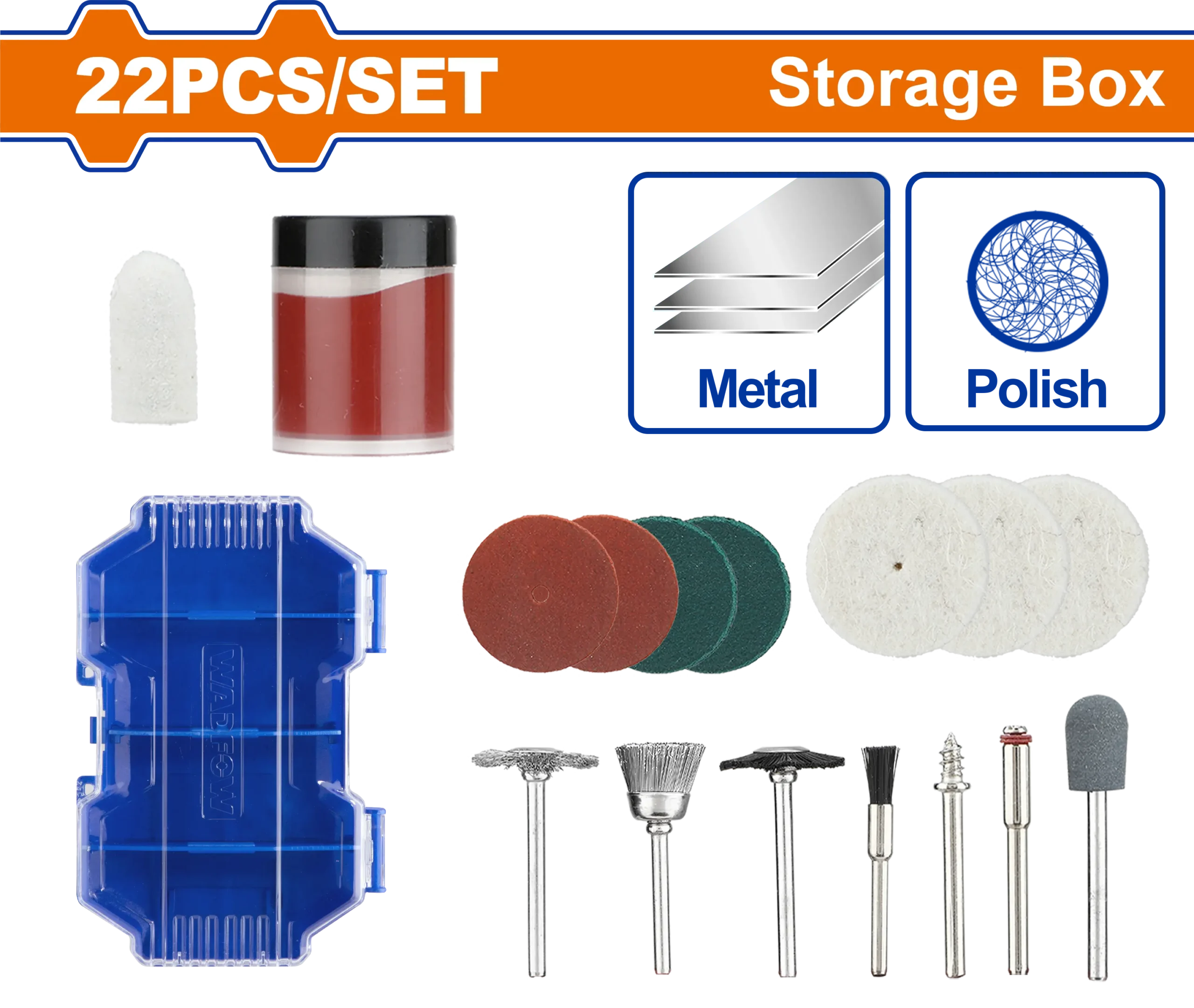 - Producto: ACCESORIOS MINI TALADRO 22 PIEZAS WADFOW