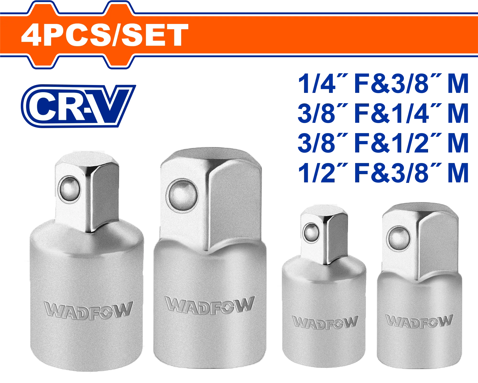 - Producto: ADAPTADOR DE DADOS 4PCS 1/4″&3/8″ 3/8″&1/4″ 3/8″&1/2″ 1/2″&3/8″ WADFOW