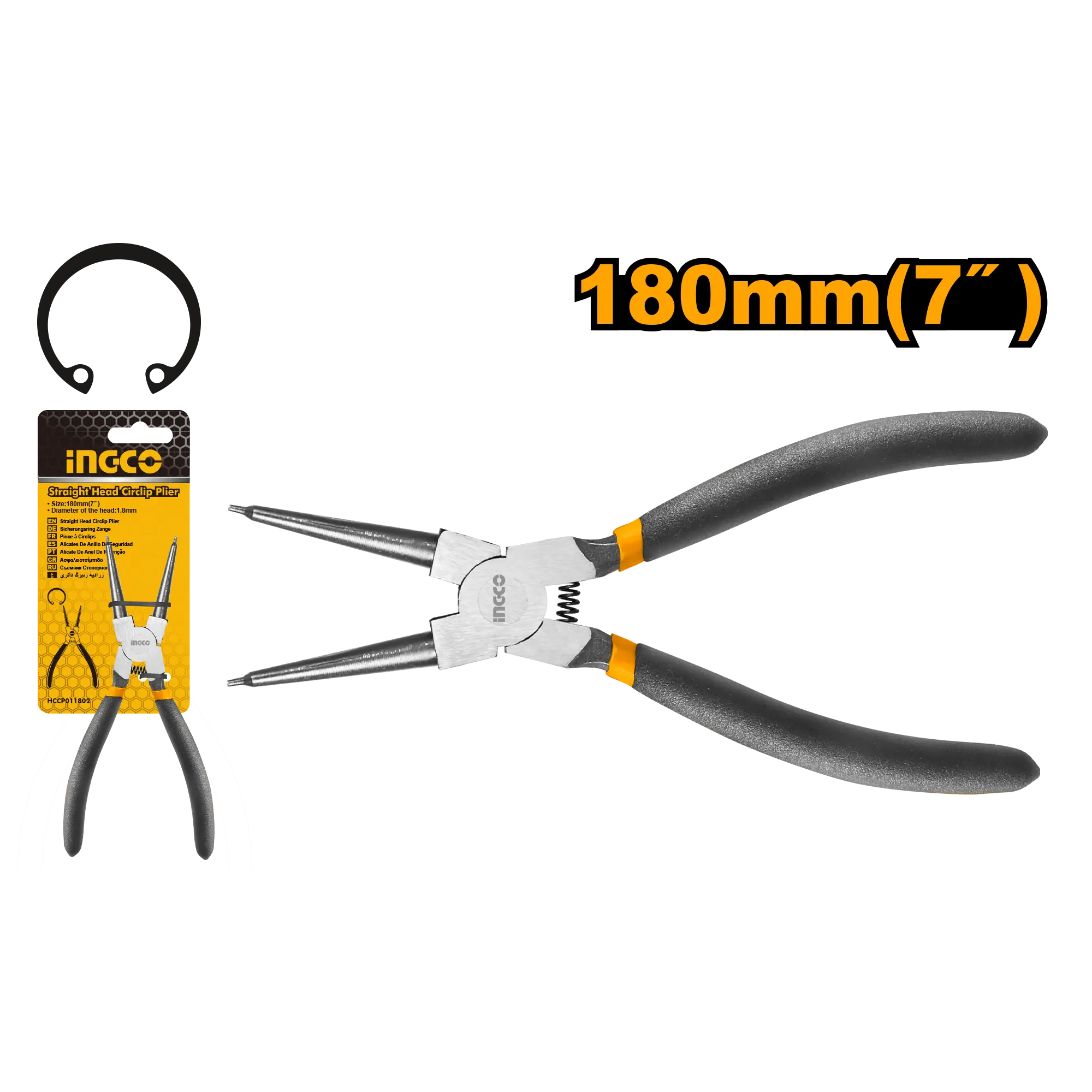 - Producto: ALICATE CIRCLIP CABEZA RECTA 7″ INGCO
