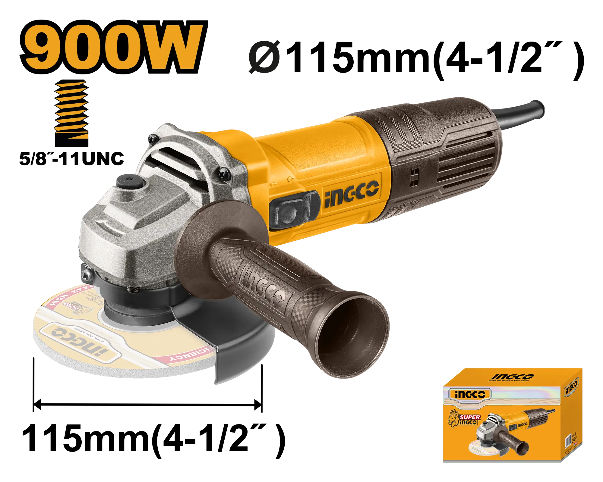 AMOLADORA ANGULAR 4-1/2″ 900W 12000RPM INGCO es un producto dentro de la categoría Herramientas eléctricas. Marca detectada: Ingco. Producto de ferretería con guía de uso basada en su nombre y medidas. Datos detectados: Voltaje: 120 V; Potencia: 900 W; Velocidad: 12000 RPM; Diámetro: 2″.