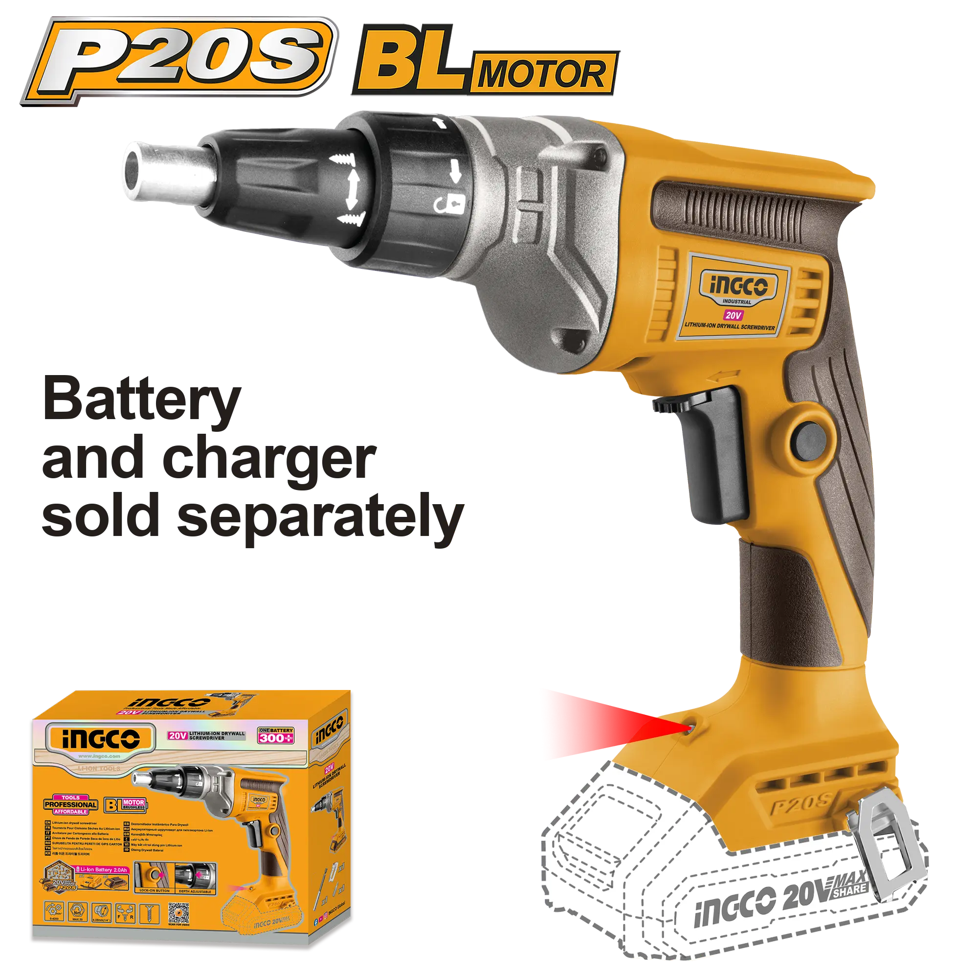 - Producto: ATORNILLADOR INALAMBRICO PARA YESO 1/4″» HEX BL 20V 30N.M INGCO
