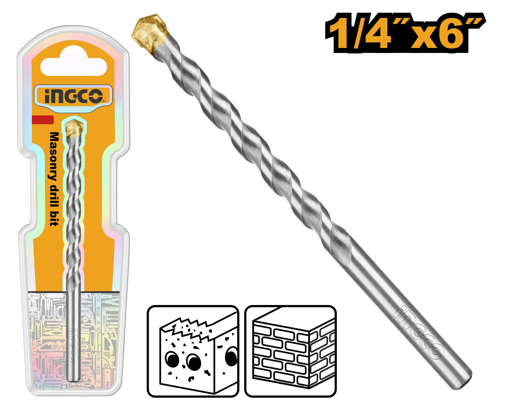 BROCA PARA MAMPOSTERÍA 1/4″X6″ INGCO es un broca dentro de la categoría Accesorios para herramientas. Marca detectada: Ingco. Esta ficha se basa en usos reales del tipo de producto y en datos detectables del nombre para resolver dudas del día a día sin inventar especificaciones. Datos detectados: Medida: 6.35 mm.
