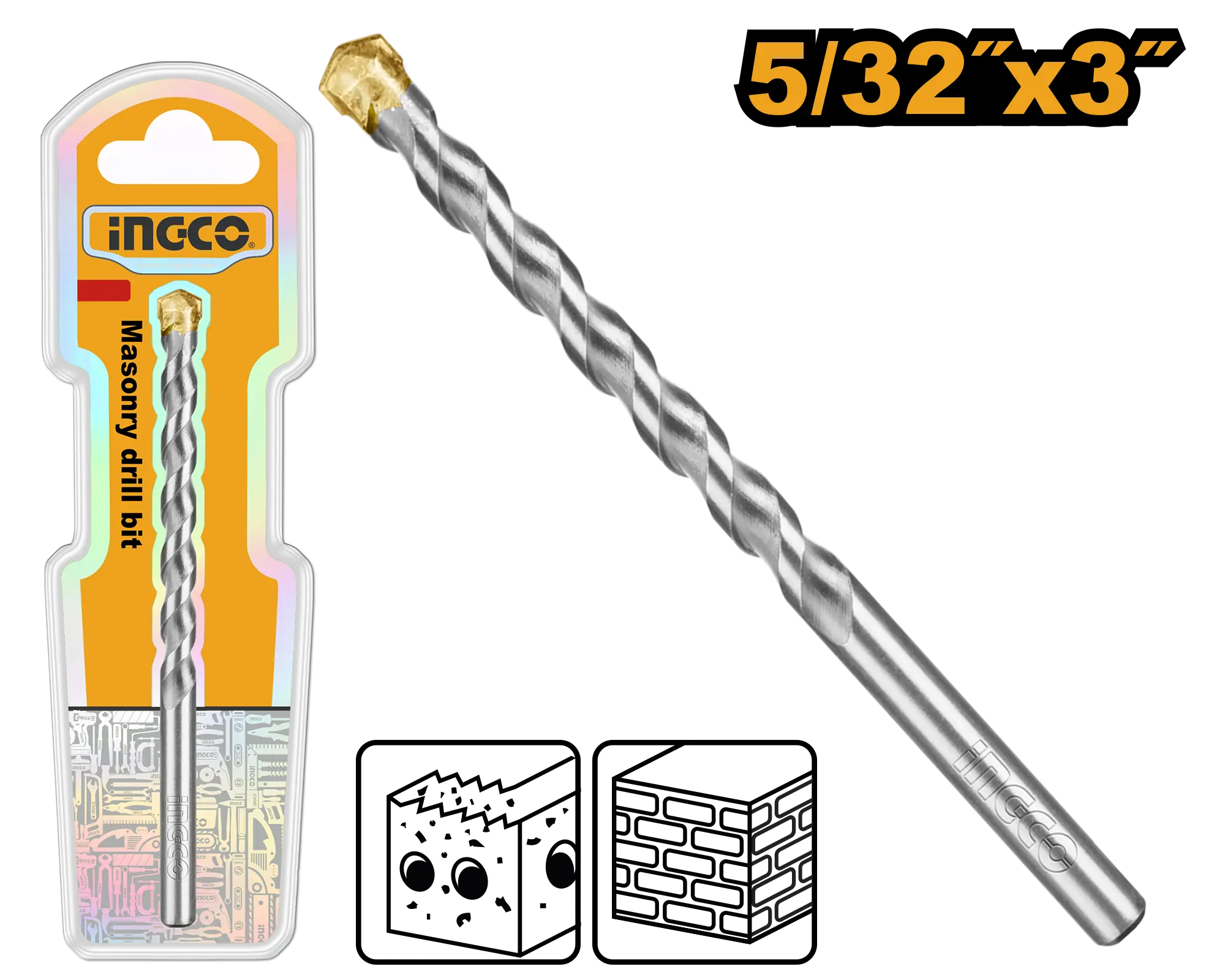 BROCA PARA MAMPOSTERIA 5/32″*3″ INGCO es un broca dentro de la categoría Accesorios para herramientas. Marca detectada: Ingco. Esta ficha se basa en usos reales del tipo de producto y en datos detectables del nombre para resolver dudas del día a día sin inventar especificaciones. Datos detectados: Medida: 3.97 mm.