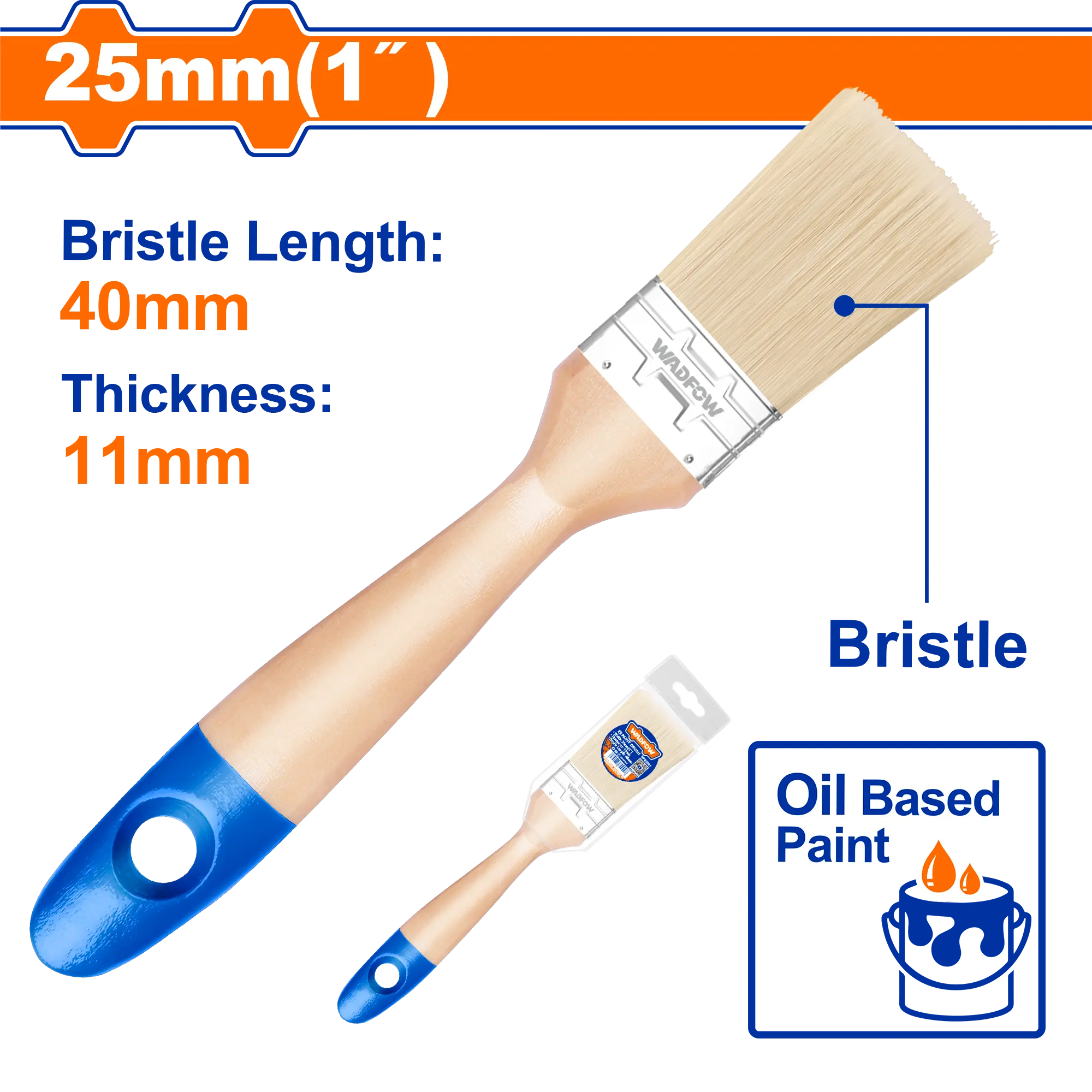 BROCHA PARA PINTURA DE 1″ WADFOW es un herramienta manual dentro de la categoría Herramientas manuales. Marca detectada: Wadfow. Esta ficha usa buenas prácticas del tipo de herramienta y datos detectables del producto para resolver dudas del día a día sin inventar especificaciones. Datos detectados: Medida: 25 mm.