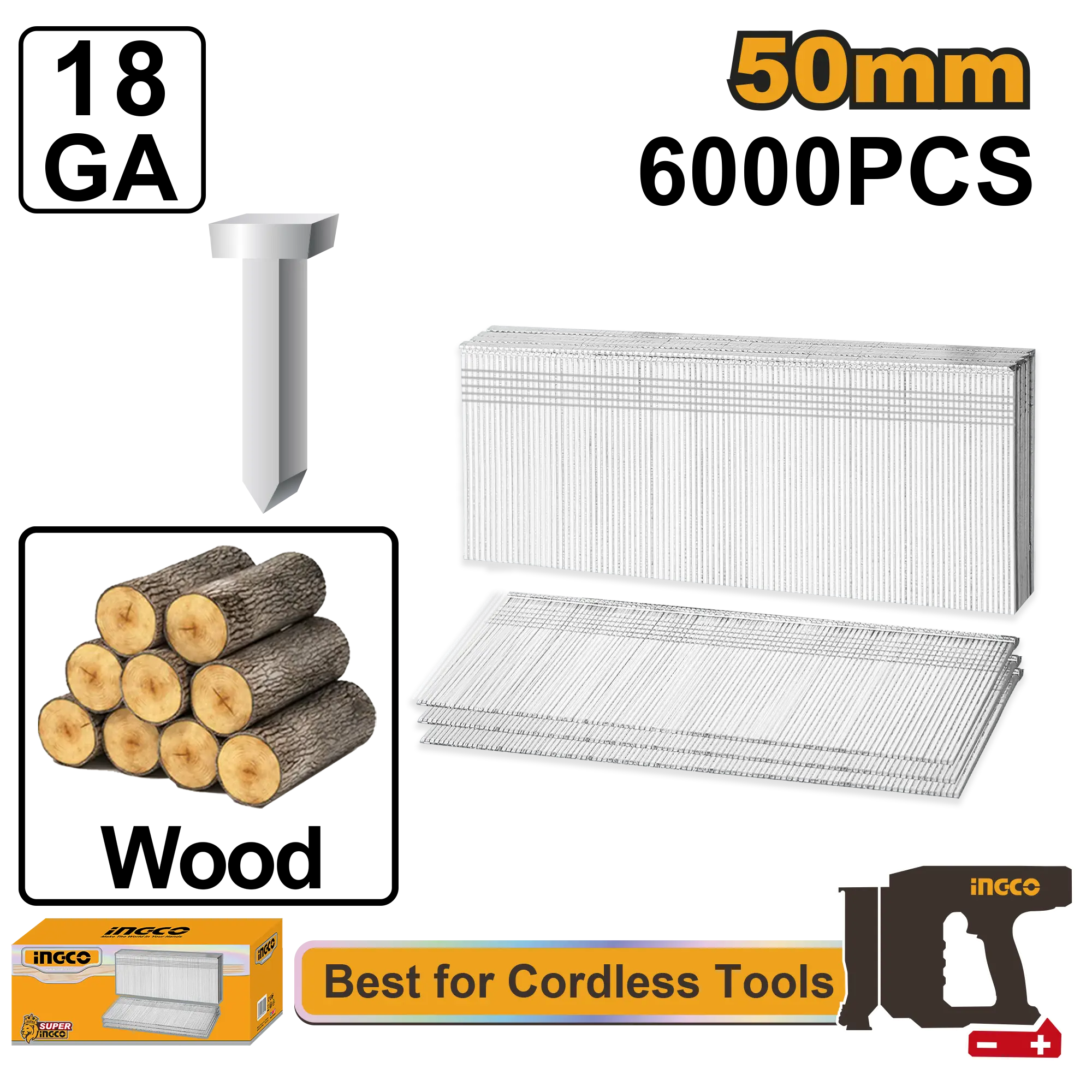 CLAVOS 50MM 6000PCS INGCO es un producto dentro de la categoría Herramientas manuales. Marca detectada: Ingco. Producto orientado a uso práctico según su nombre y datos detectables, con foco en compatibilidad y seguridad. Datos detectados: Medida: 50 mm. Nota: Longitud de Brad: 50 mm 6000 piezas/caja de color \nAdecuado para CBNLI5005, CBNLI5008 Ga18,1 0mm \nEmbalado en caja de color nan.