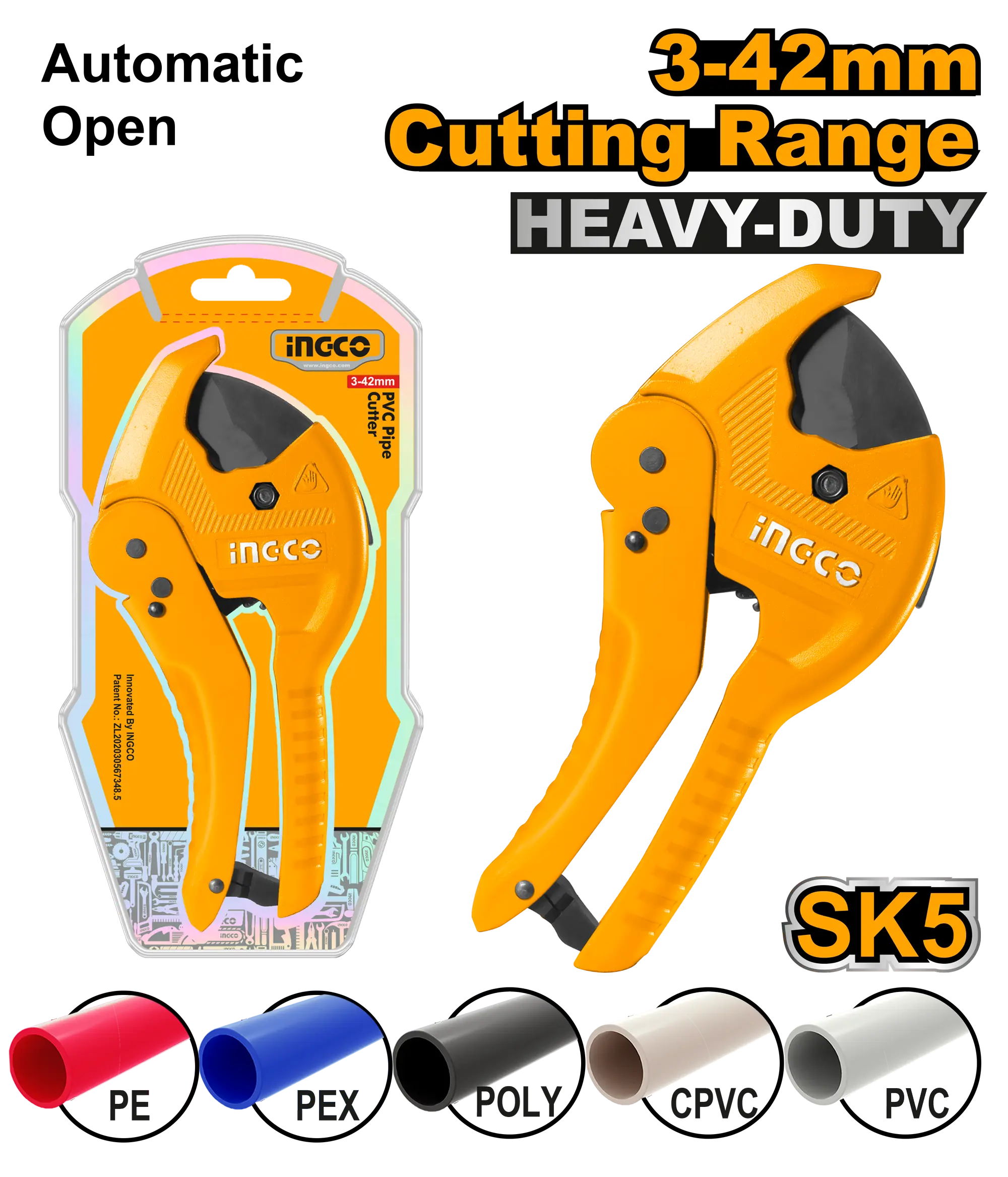 - Producto: CORTADOR DE TUBO PVC 3-42MM INGCO