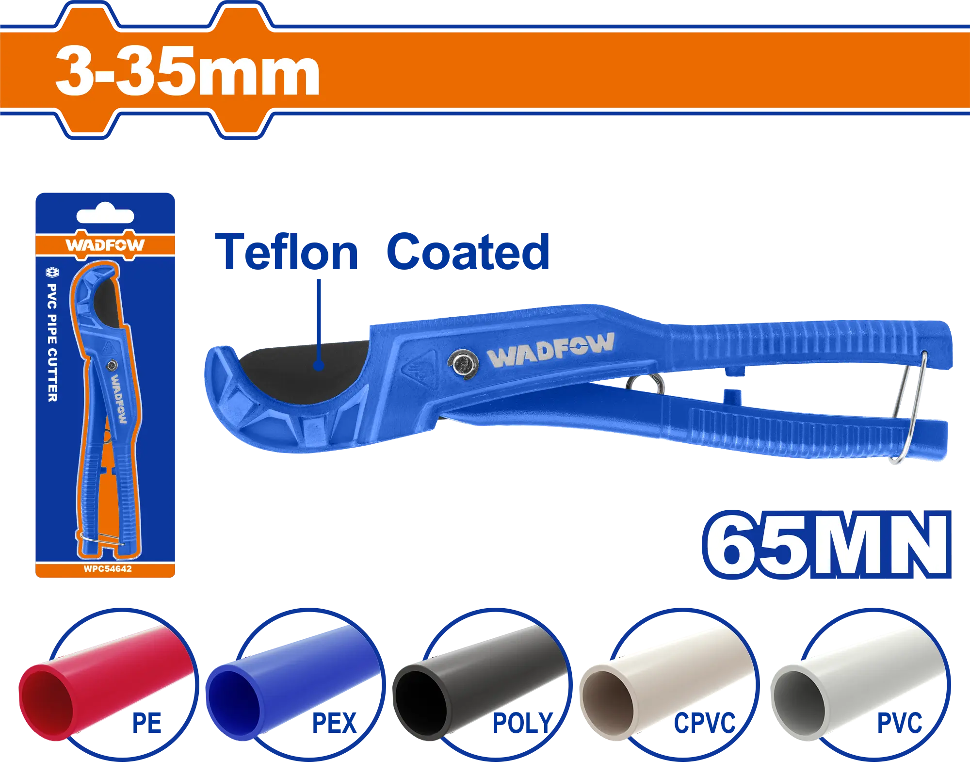 - Producto: CORTADOR DE TUBO PVC AZUL DE 3 A 35MM WADFOW