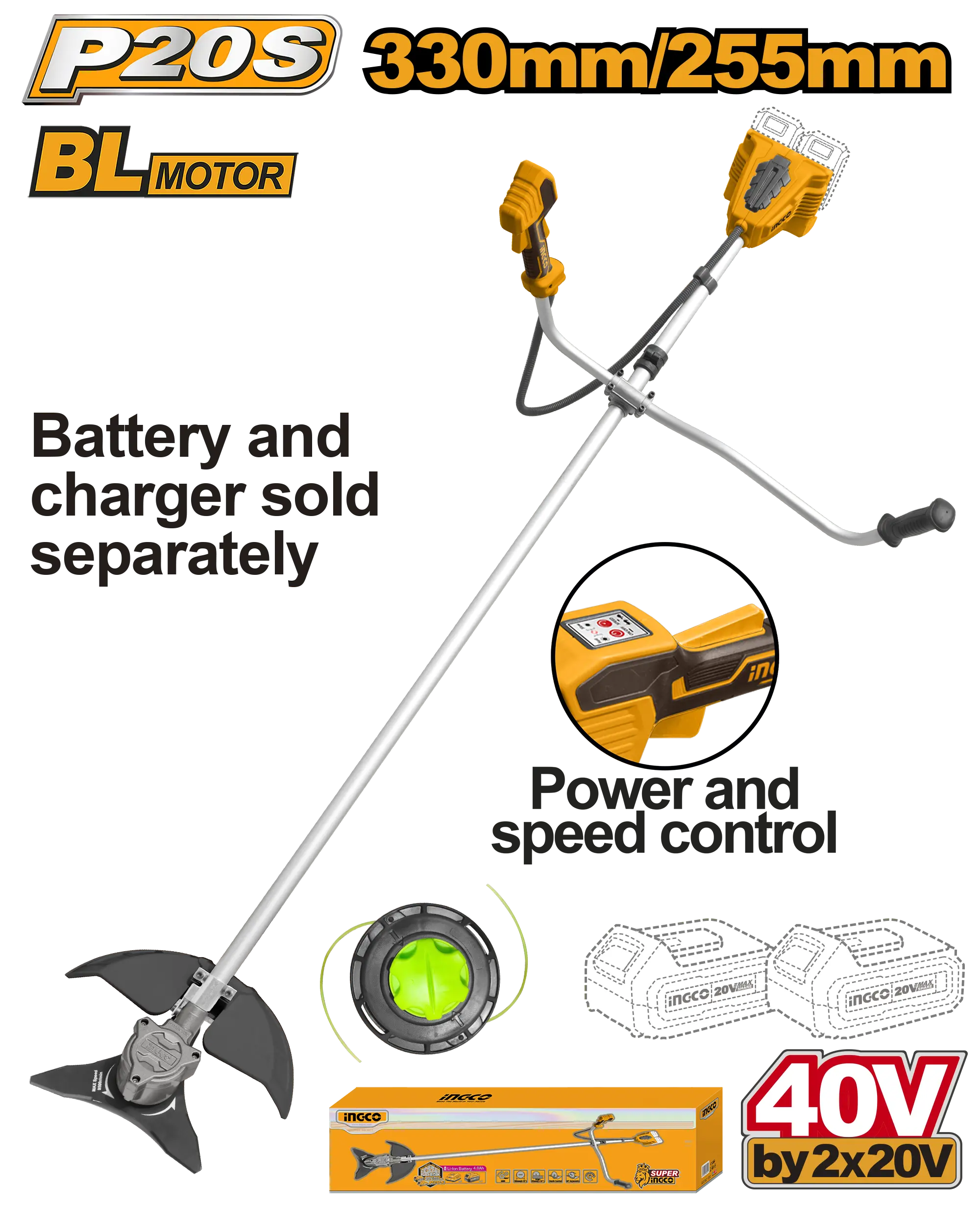 CORTADORA DE HIERBA 330/255MM BL 40V INGCO