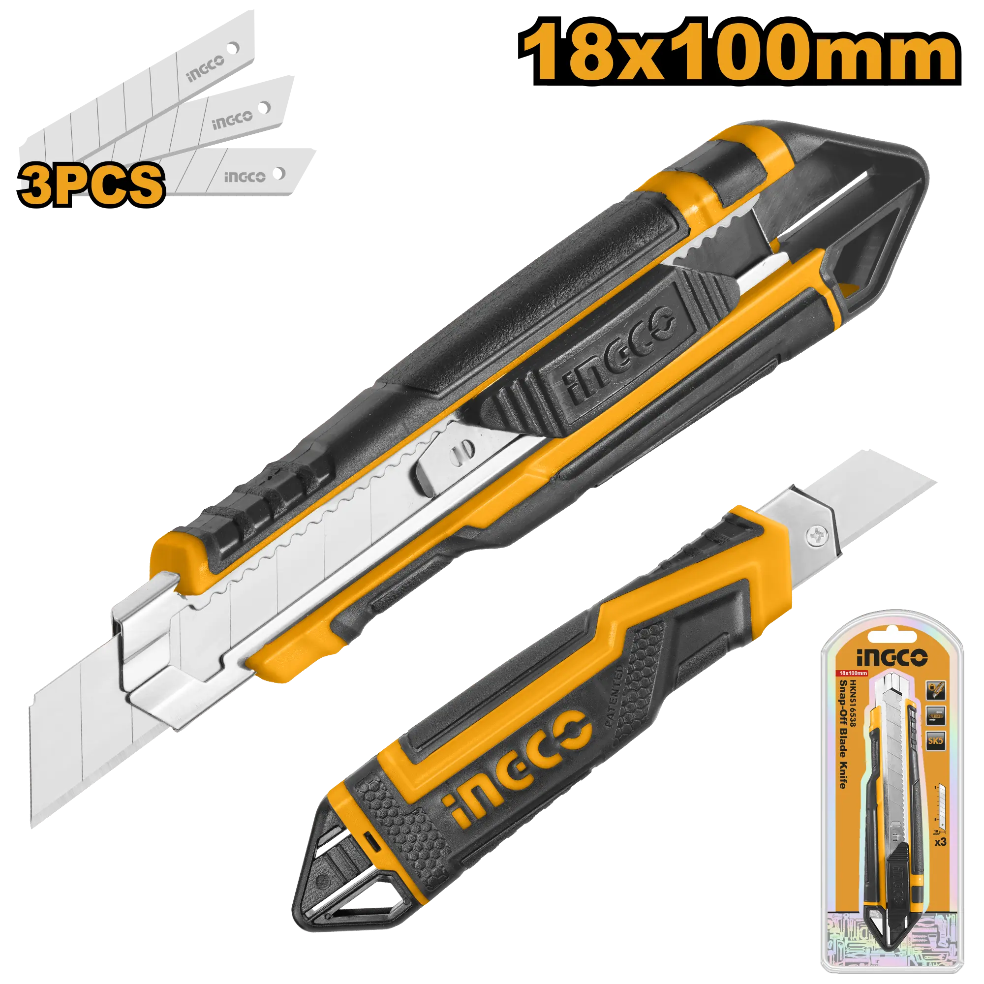 CUCHILLA ESTILETE CON REPUESTOS 3 PCS es un producto dentro de la categoría Herramientas manuales. Producto orientado a uso práctico según su nombre y datos detectables, con foco en compatibilidad y seguridad. Datos detectados: Medida: 100 mm. Nota: Tamaño de la hoja: 18mmx100mm\nCon 3 cuchillas SK5 pcs \nLongitud: 169 mm\nCon pulsador plano.