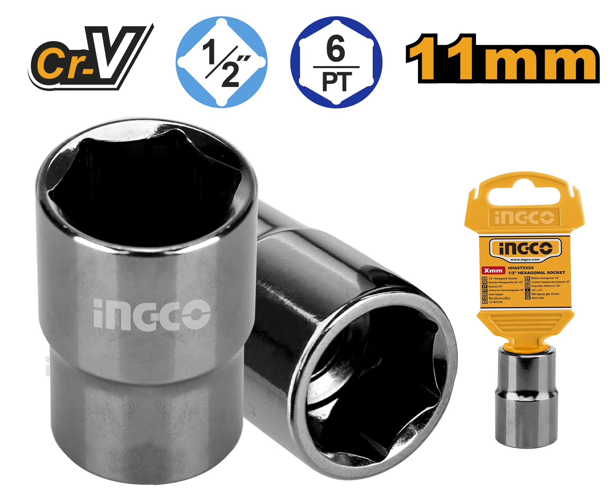 DADO 11MM DE 1/2 INGCO es un producto dentro de la categoría Herramientas manuales. Marca detectada: Ingco. Producto orientado a uso práctico según su nombre y datos detectables, con foco en compatibilidad y seguridad. Datos detectados: Diámetro: 2″; Medida: 11 mm; Material: Plástico. Nota: socket, 11MM\nMaterial: 50BV30, tratamiento térmico, niquelado negro\nEmbalado por colgador de plástico nan.