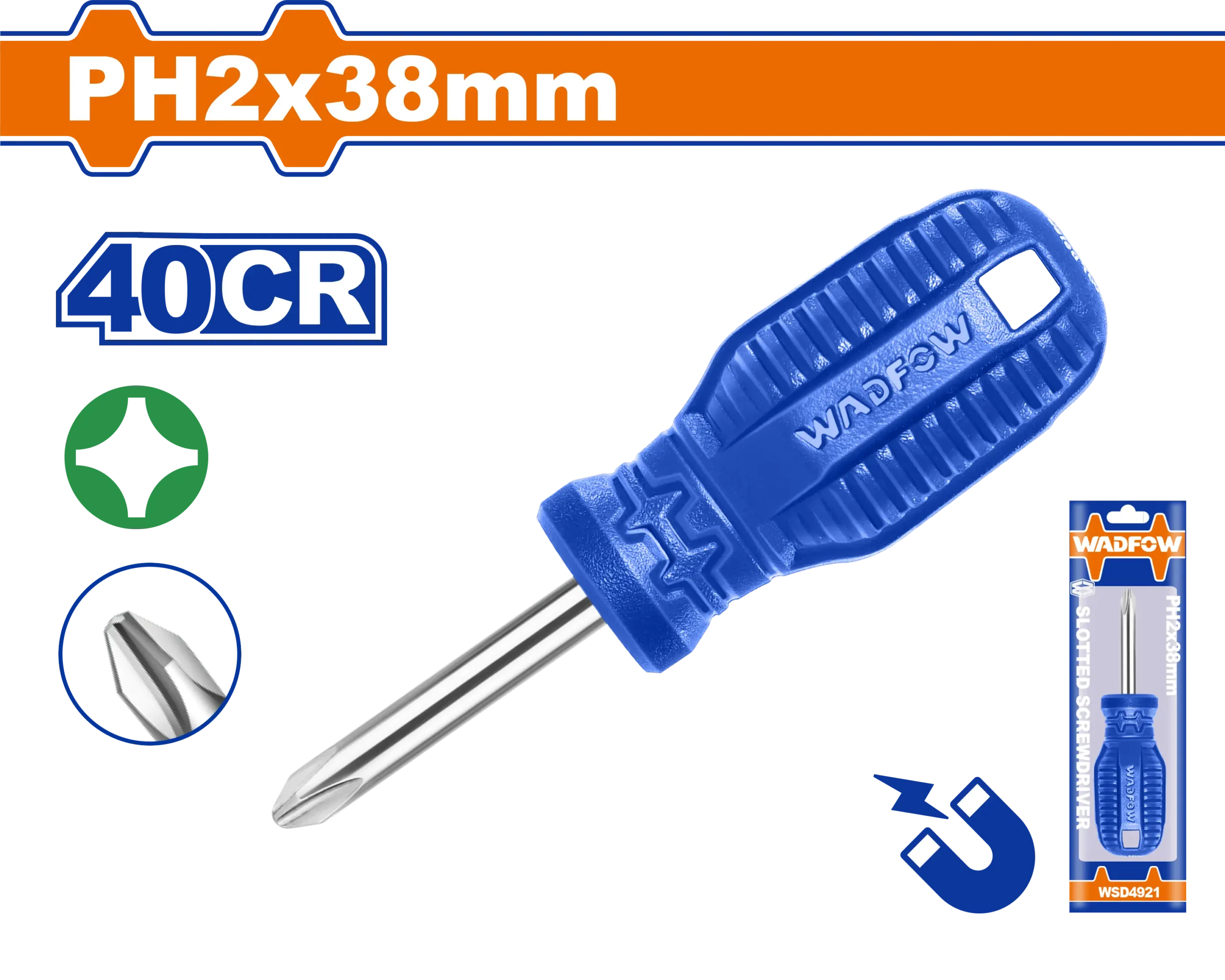 - Producto: DESTORNILLADOR ESTRELLA 1/4″ X 1.1/2″ PH2 AZUL FUNDA TOROMBOLO WADFOW