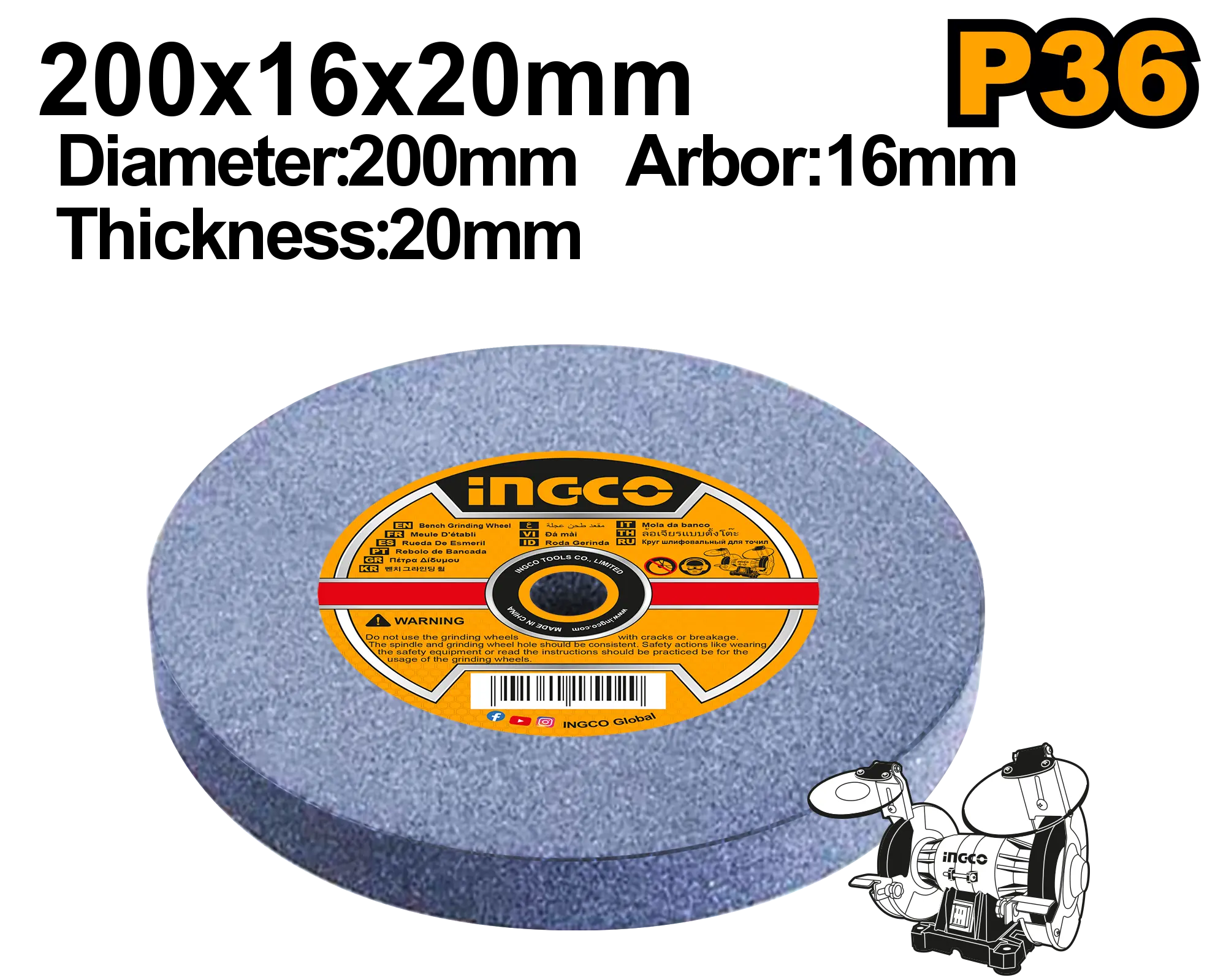 DISCO DE PIEDRA ESMERIL DE BANCO 200X16X20MM INGCO es un esmeriladora dentro de la categoría Accesorios para herramientas. Marca detectada: Ingco. Esta ficha se basa en usos reales del tipo de producto y en datos detectables del nombre para resolver dudas del día a día sin inventar especificaciones. Datos detectados: Medida: 20 mm.