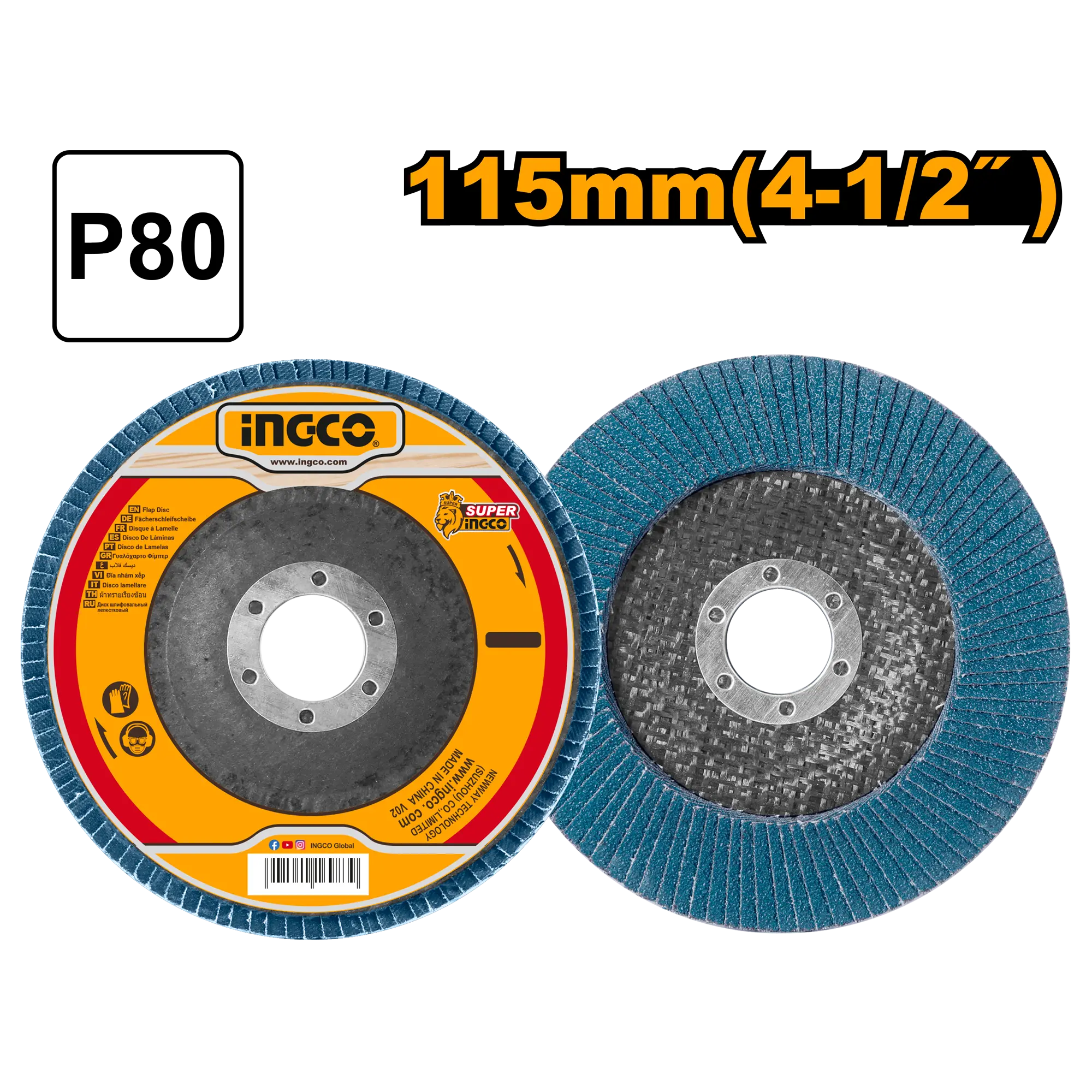 DISCO FLAP DE CIRCONIO 115X22MM 4 1/2″X7/8″ GRIT80 INGCO es un producto dentro de la categoría Accesorios para herramientas. Marca detectada: Ingco. Esta ficha se basa en el nombre y datos detectables para orientar uso y compra sin inventar especificaciones. Datos detectados: Medida: 22 mm; Diámetro: 2″.