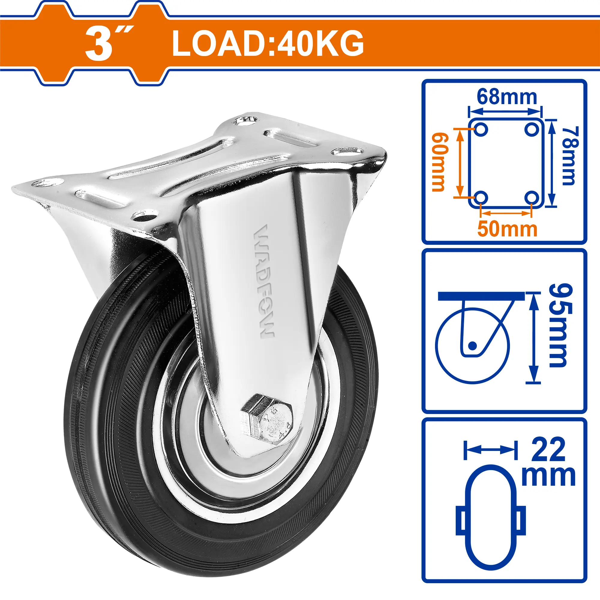 - Producto: GARRUCHA FIJA NEGRA 3″ 40KG WADFOW
