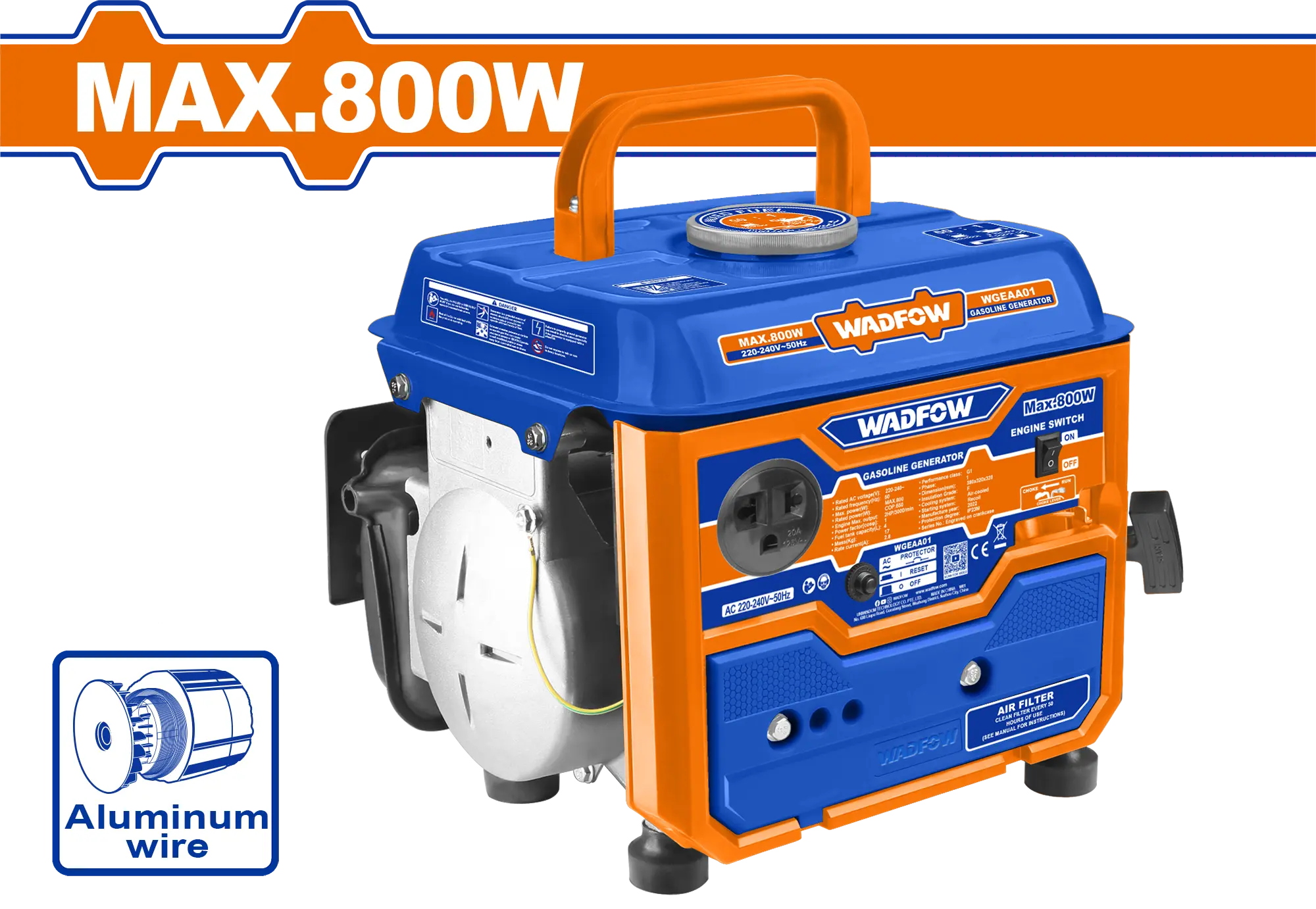 • Producto: GENERADOR ELECTRICO A GASOLINA 110V 8.3A/ 0.8KVA 120V WADFOW