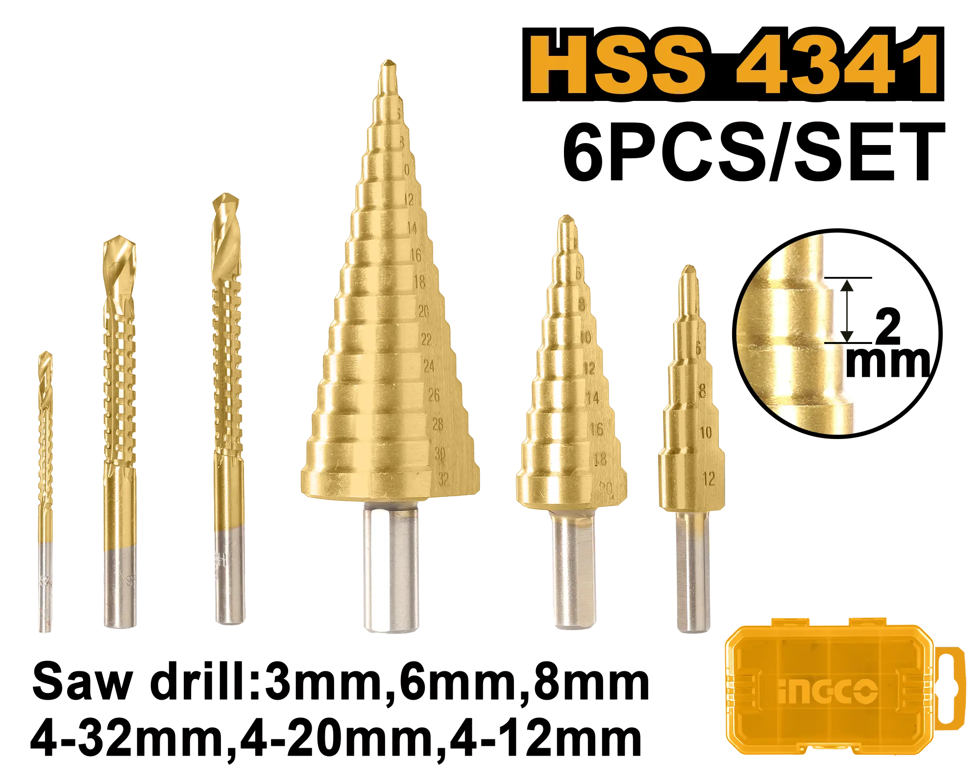 JUEGO DE BROCAS ESCALONADAS 6 PCS INGCO es un broca para materiales compatibles dentro de la categoría Accesorios para herramientas. Marca detectada: Ingco. Esta ficha se basa en usos reales del tipo de producto y en datos detectables del nombre para resolver dudas del día a día sin inventar especificaciones. Datos detectados: Piezas: 6 pcs.