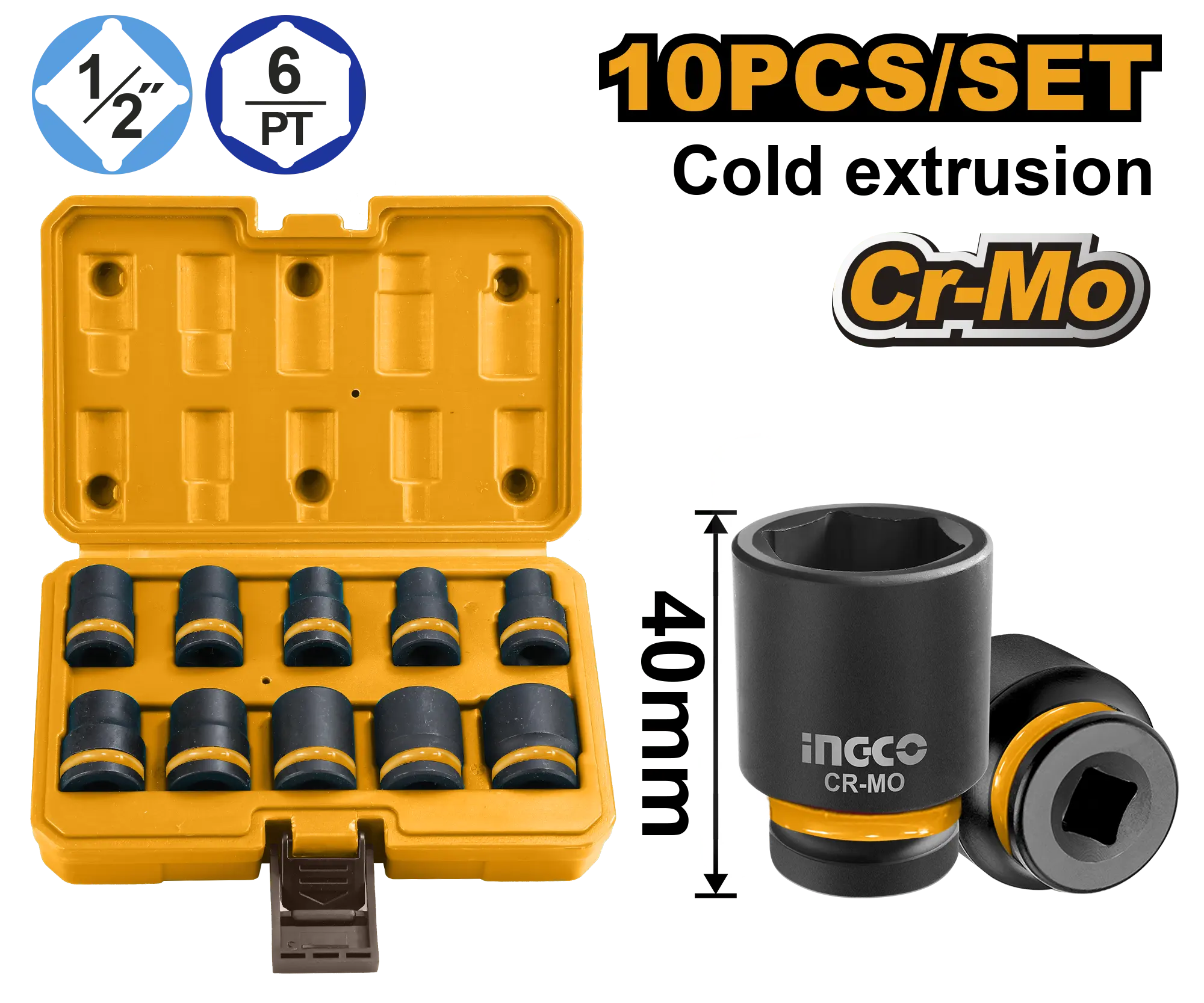 JUEGO DE DADO DE IMPACTO 1/2″ – 10-12-13-14-15-17-19-21-22-24 es un producto dentro de la categoría Herramientas manuales. Herramienta para aflojar/apretar con impacto; usa dado de impacto y torque controlado. Datos detectados: Diámetro: 2″; Medida: 22.24 mm. Nota: Juego de 10 dados de impacto de 1/2″DR Material:CrMo Tamaño:10.
