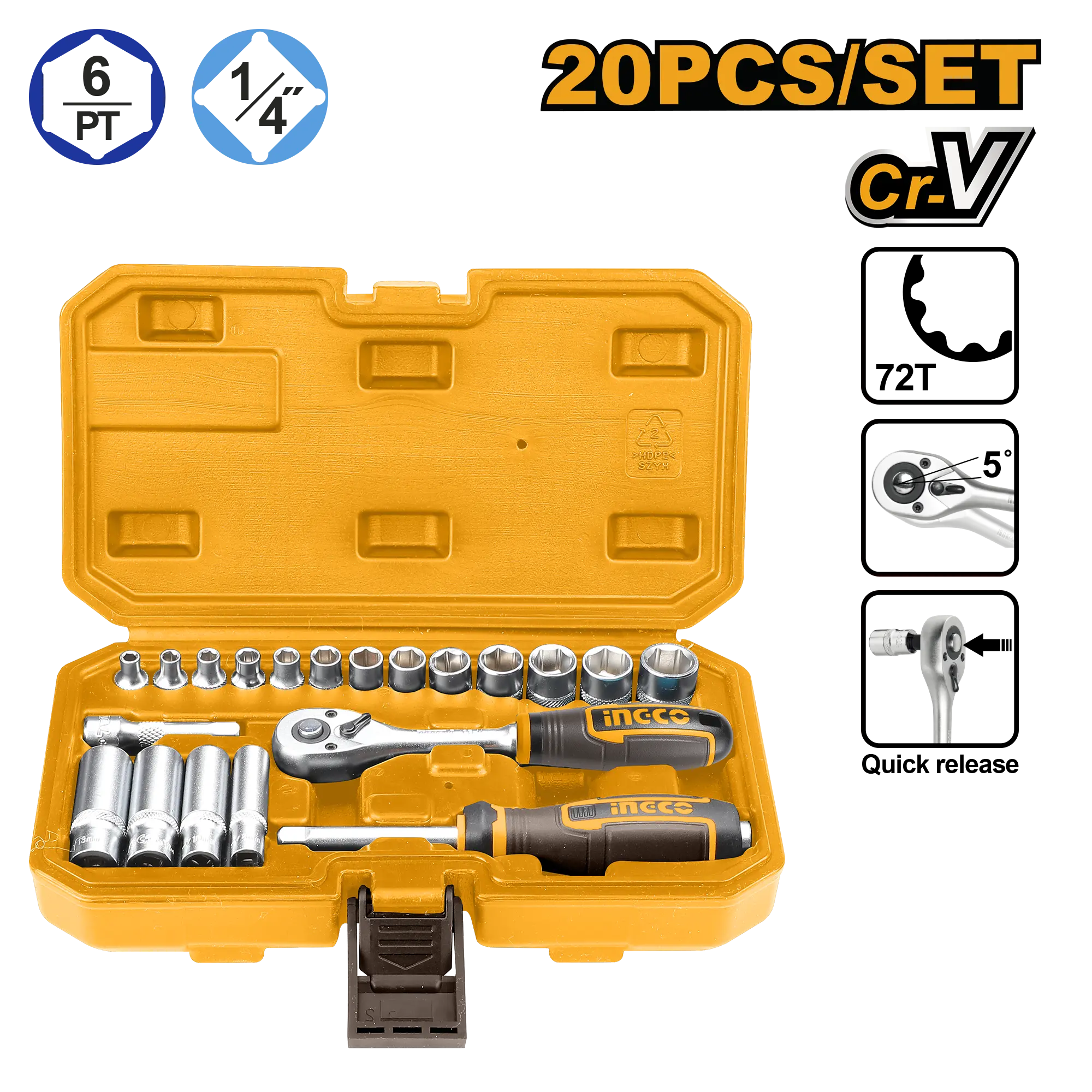 - Producto: JUEGO DE DADOS 20PCS 1/4″ INGCO