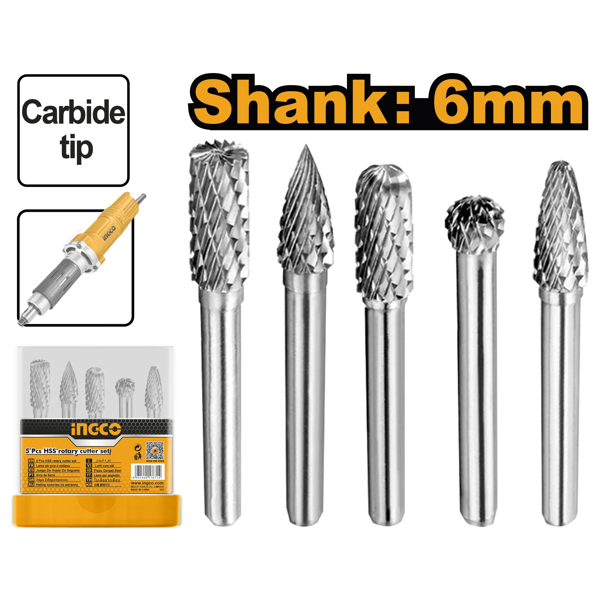 JUEGO DE FRESAS ROTATIVAS 6MM 5PCS INGCO es un producto dentro de la categoría Accesorios para herramientas. Marca detectada: Ingco. La información se basa en datos detectables del nombre y buenas prácticas de uso para orientar compra y aplicación sin inventar especificaciones. Datos detectados: Medida: 6 mm; Piezas: 5 pcs.