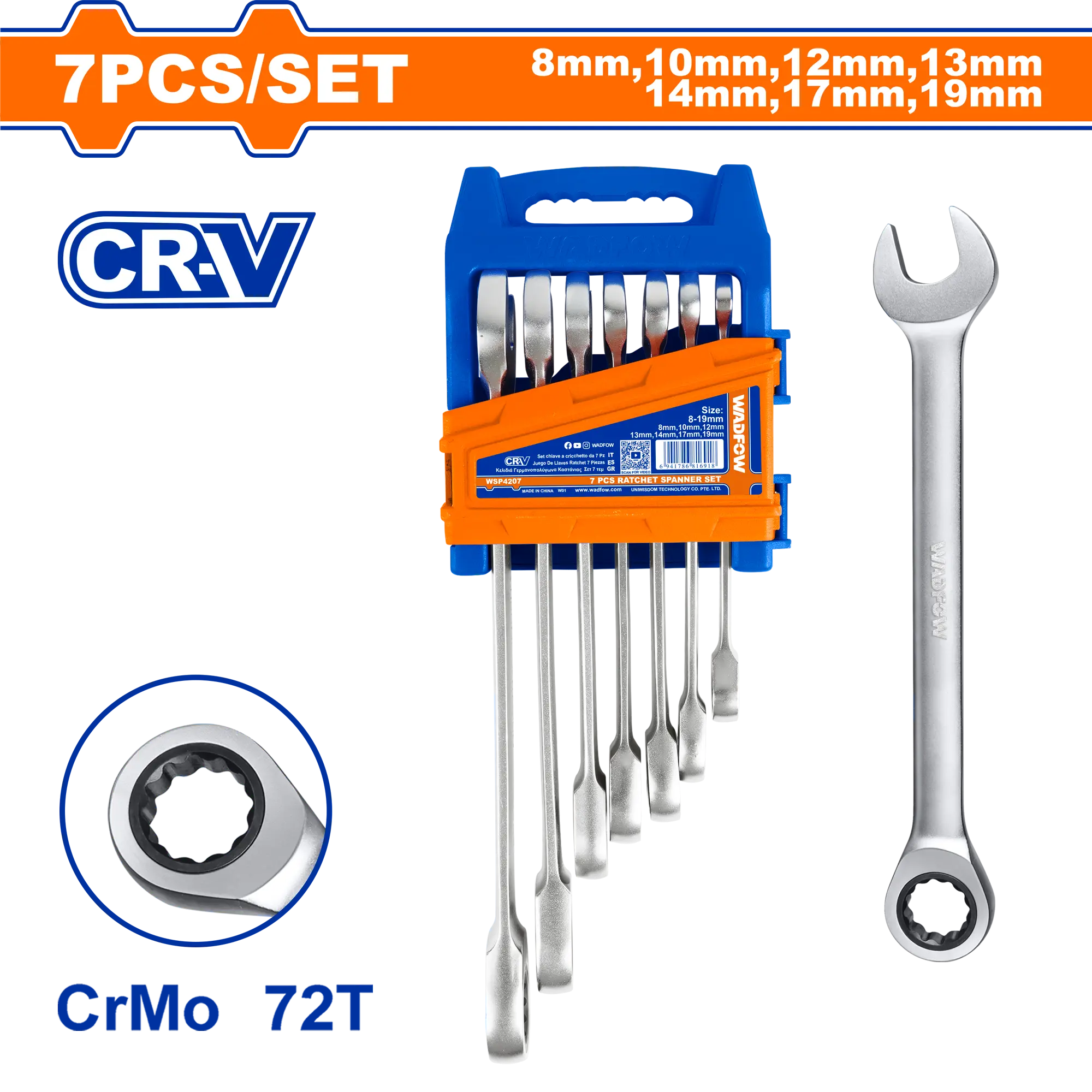 JUEGO DE LLAVES MIXTAS CON RACHET 7 PCS WADFOW