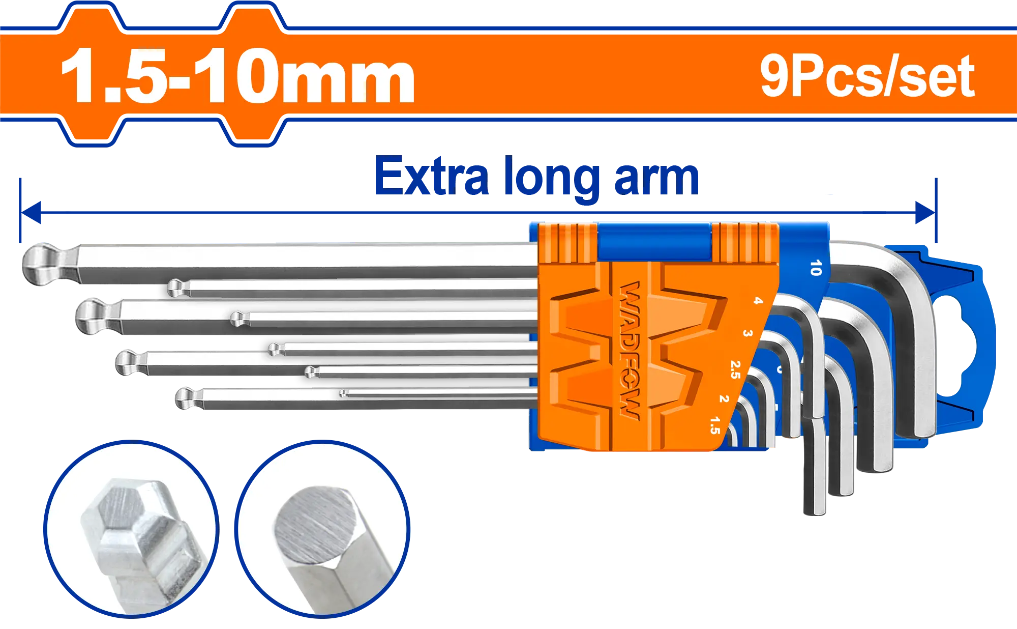 JUEGO LLAVE HEXAGONAL PUNTO DE BOLA (L) 9PCS WADFOW.