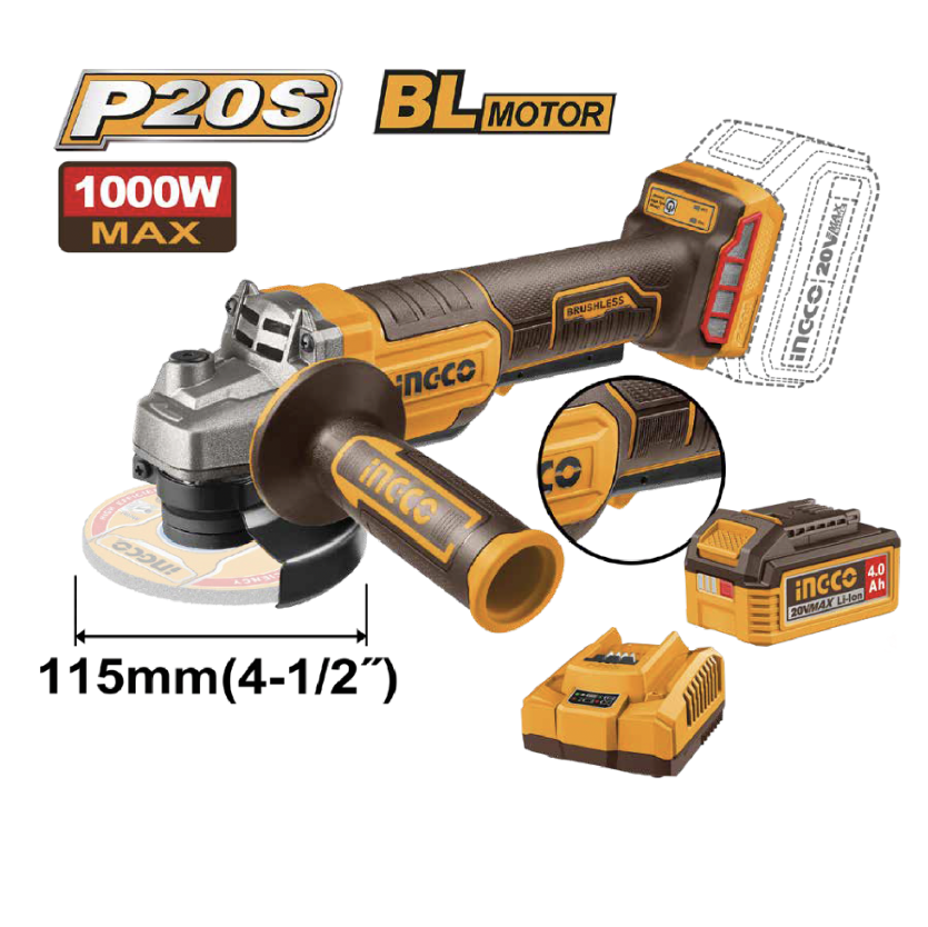 - Producto: KIT AMOLADORA ANGULAR 4-1/2″ BL 20V 8000RPM INGCO
