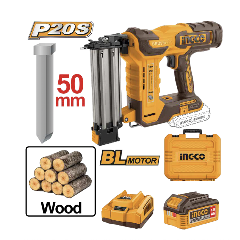 - Producto: KIT CLAVADORA INALAMBRICA DE IONES DE LITIO 50MM 20V INGCO