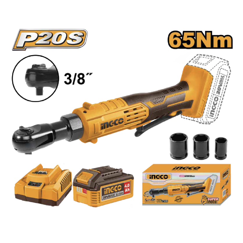 - Producto: KIT LLAVE DE RACHET 3/8» 20V 65N.M INGCO