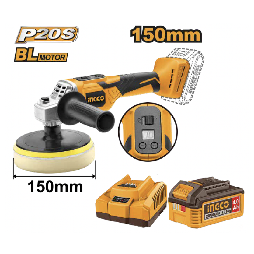 • Producto: KIT PULIDORA INALAMBRICA 150MM BL 20V INGCO
