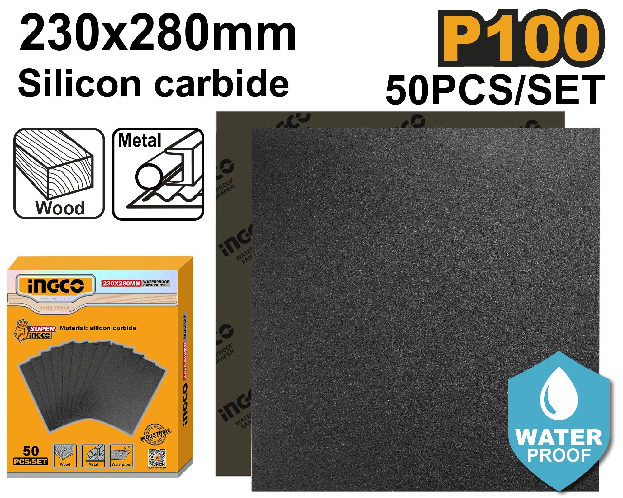 LIJA DE AGUA G100 INGCO es un producto dentro de la categoría Herramientas manuales. Marca detectada: Ingco. Consumible abrasivo para desbaste o acabado; el grano define el resultado. Datos detectados: Medida: 280 mm. Nota: Adecuado para lijar madera, paredes, pintura, plástico, piedra, metal y vidrio Embalado en caja de color.