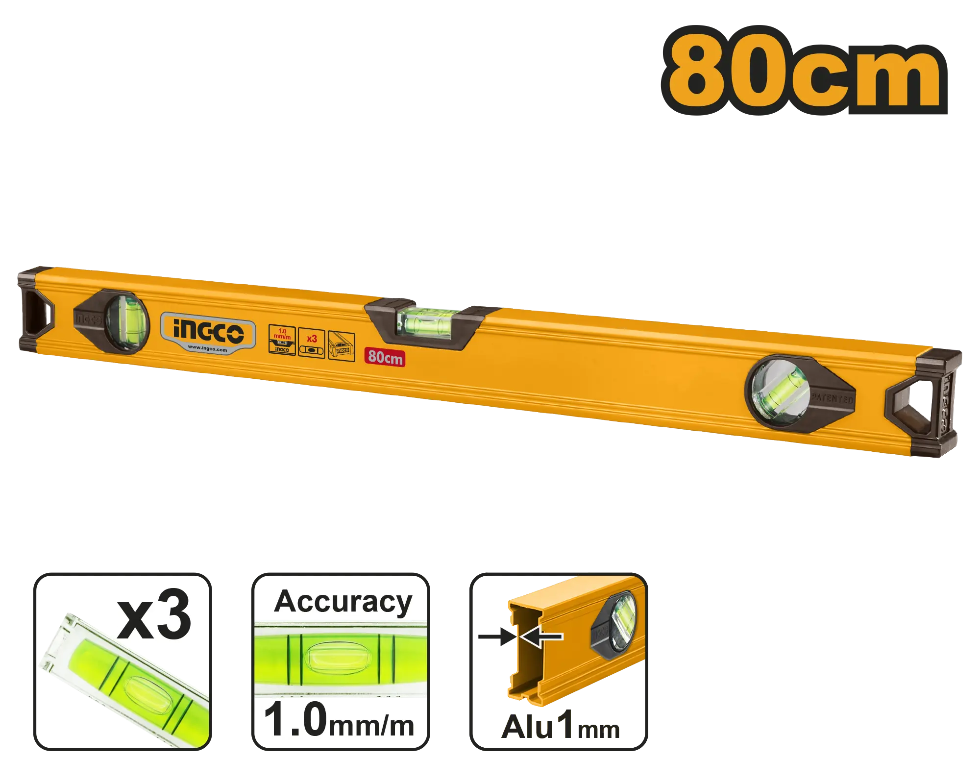 NIVEL PROFESIONAL 80CM INGCO es un producto dentro de la categoría Herramientas manuales. Marca detectada: Ingco. NIVEL PROFESIONAL 80CM INGCO es un herramientas orientado a uso práctico y seguro. Datos detectados: Medida: 1 mm.