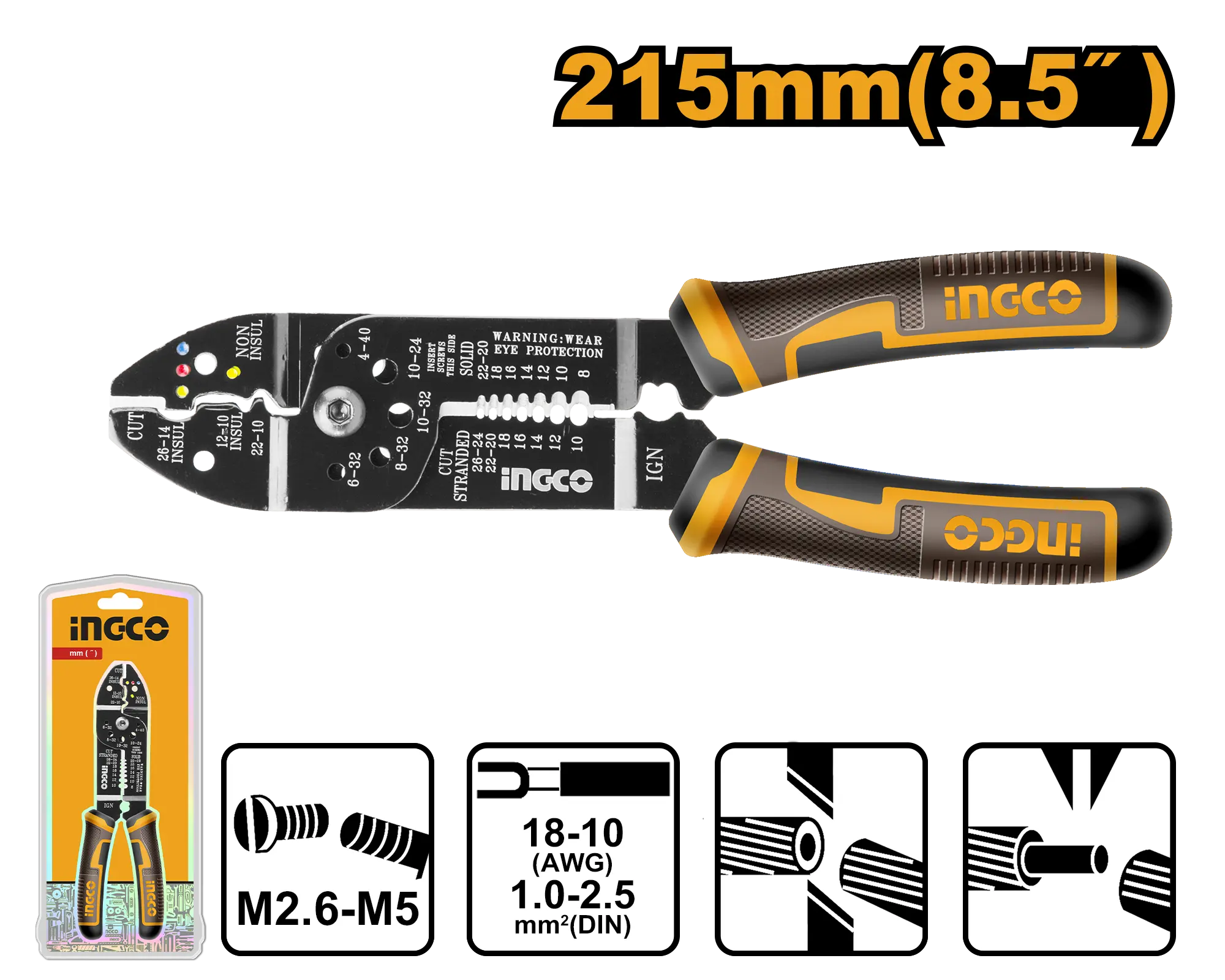 PINZA CORTADORA Y PELADORA DE ALAMBRE 215MM 8.5″ INGCO es un producto dentro de la categoría Herramientas manuales. Marca detectada: Ingco. PINZA CORTADORA Y PELADORA DE ALAMBRE 215MM 8.5″ INGCO es un herramientas orientado a uso práctico y seguro. Datos detectados: Diámetro: 8.5″; Medida: 215 mm.