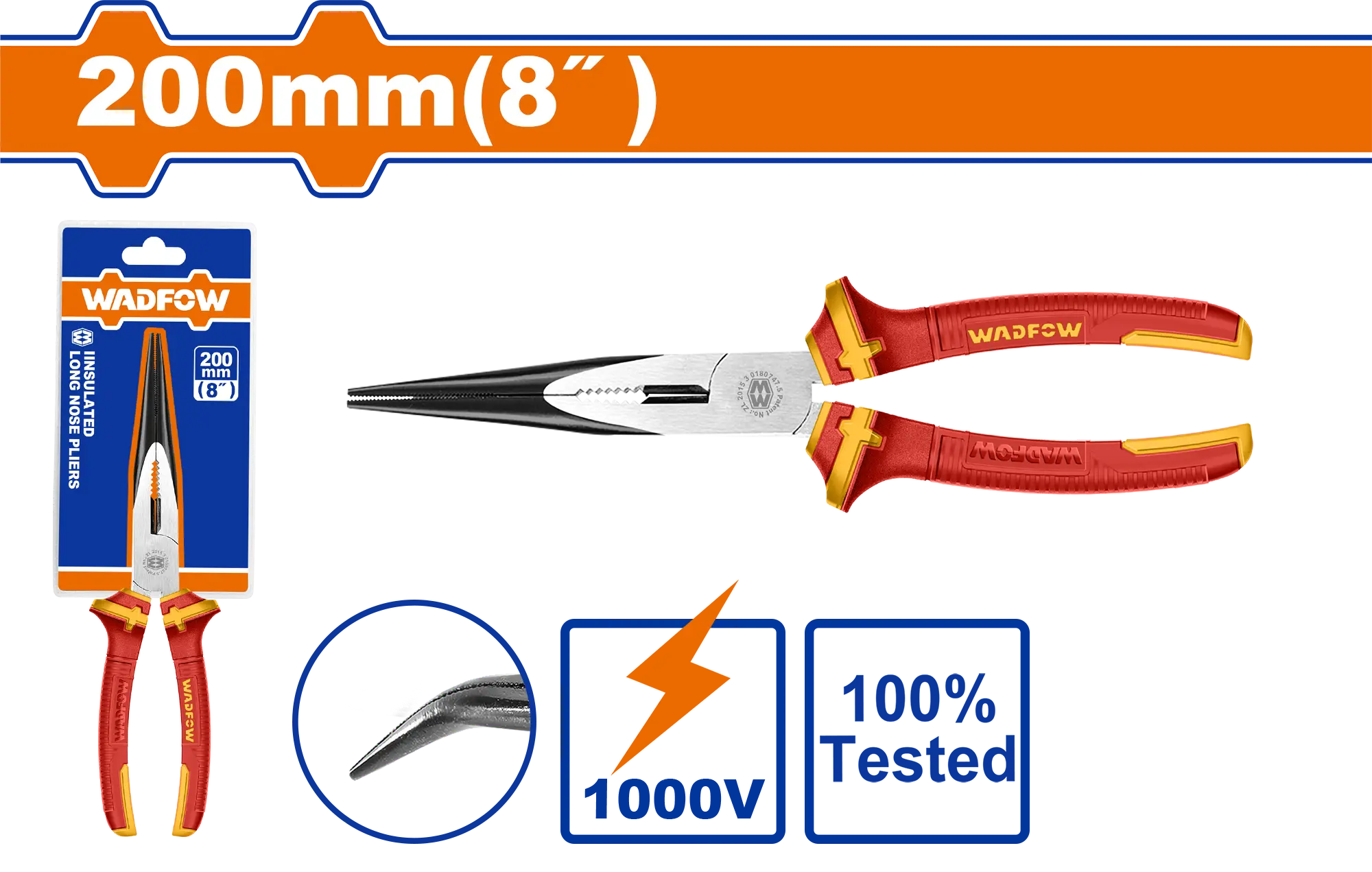 PINZA PUNTA CURVA AISLADO ELECTRICISTA 8″»1000V WADFOW es un alicate/pinza dentro de la categoría Herramientas manuales. Marca detectada: Wadfow. Esta ficha usa buenas prácticas reales del tipo de herramienta y datos detectables del producto para resolver dudas del día a día sin inventar especificaciones. Datos detectados: Medida: 200 mm; Voltaje: 1000 V.