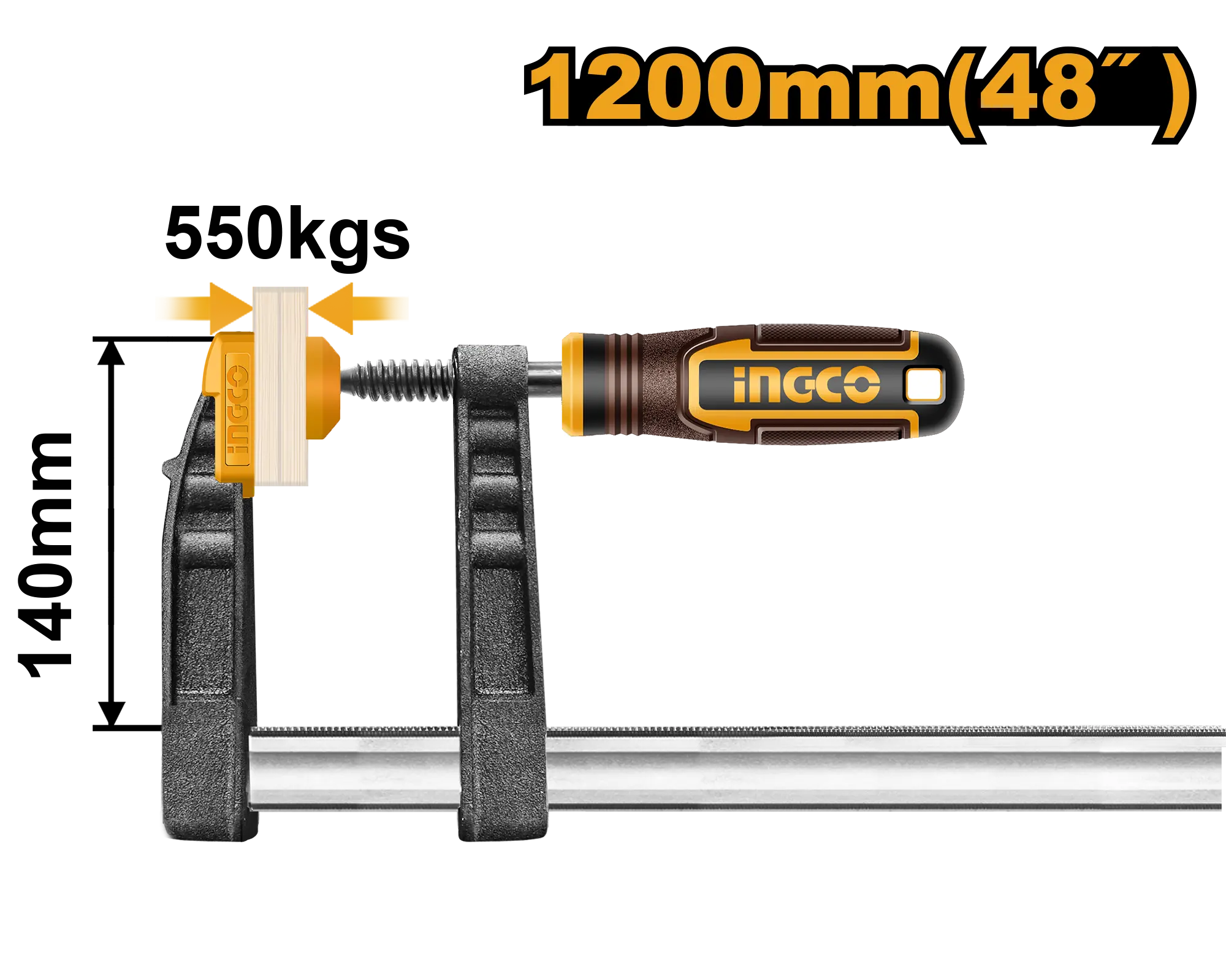PRENSA F 140X1200MM INDUSTRIAL INGCO es un producto dentro de la categoría Herramientas manuales. Marca detectada: Ingco. PRENSA F 140X1200MM INDUSTRIAL INGCO es un herramientas orientado a uso práctico y seguro. Datos detectados: Medida: 1200 mm.