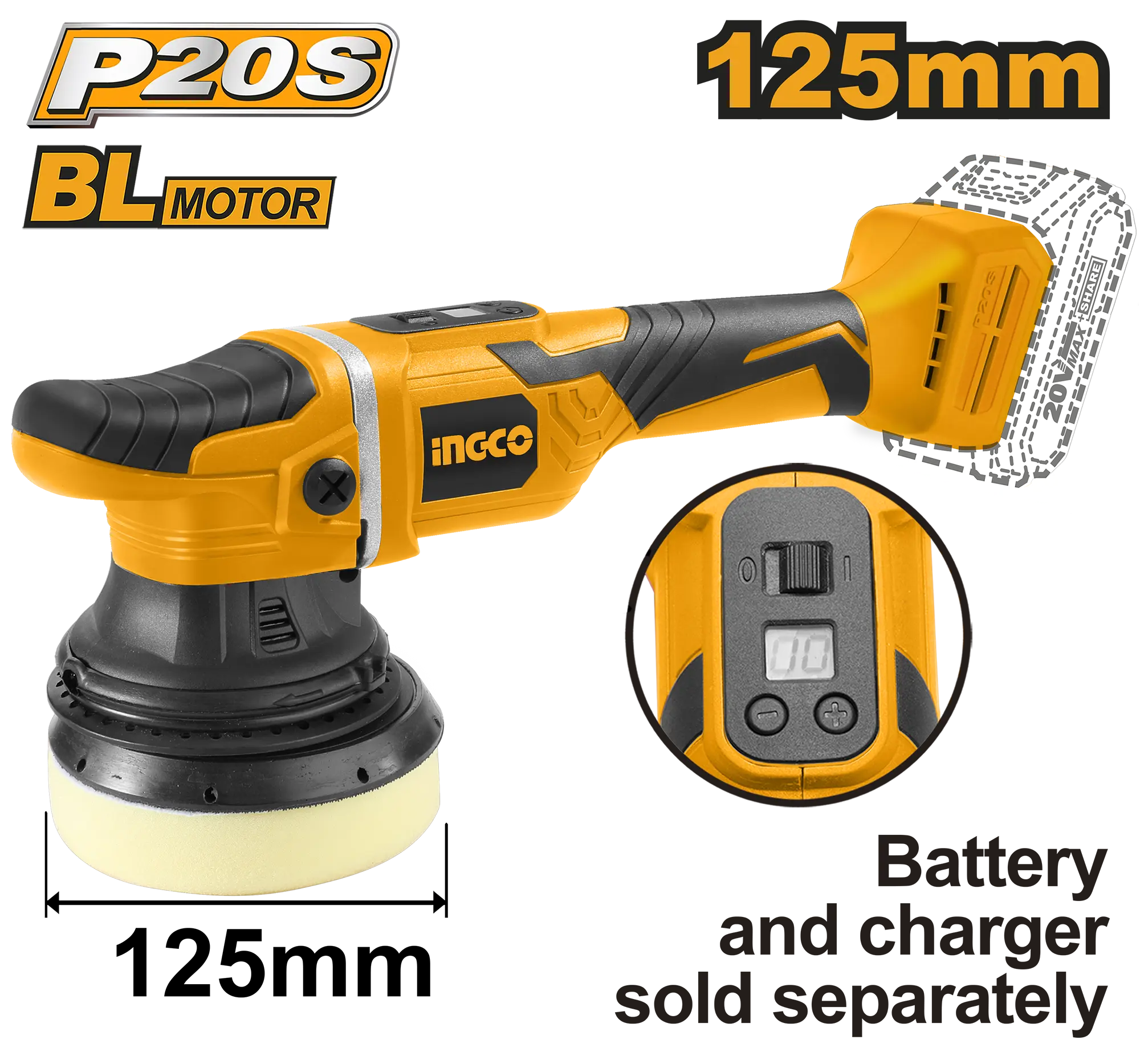 PULIDORA INALAMBRICA 125MM BL 20V 4800RPM INGCO