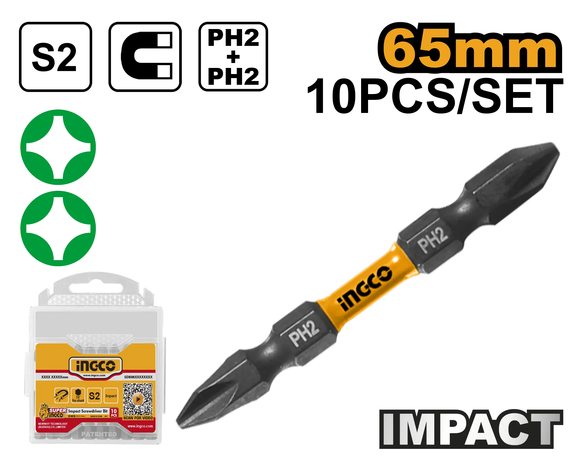• Producto: SET DE 10 PUNTAS DE DESTORNILLADOR DE IMPACTO 65MM INGCO