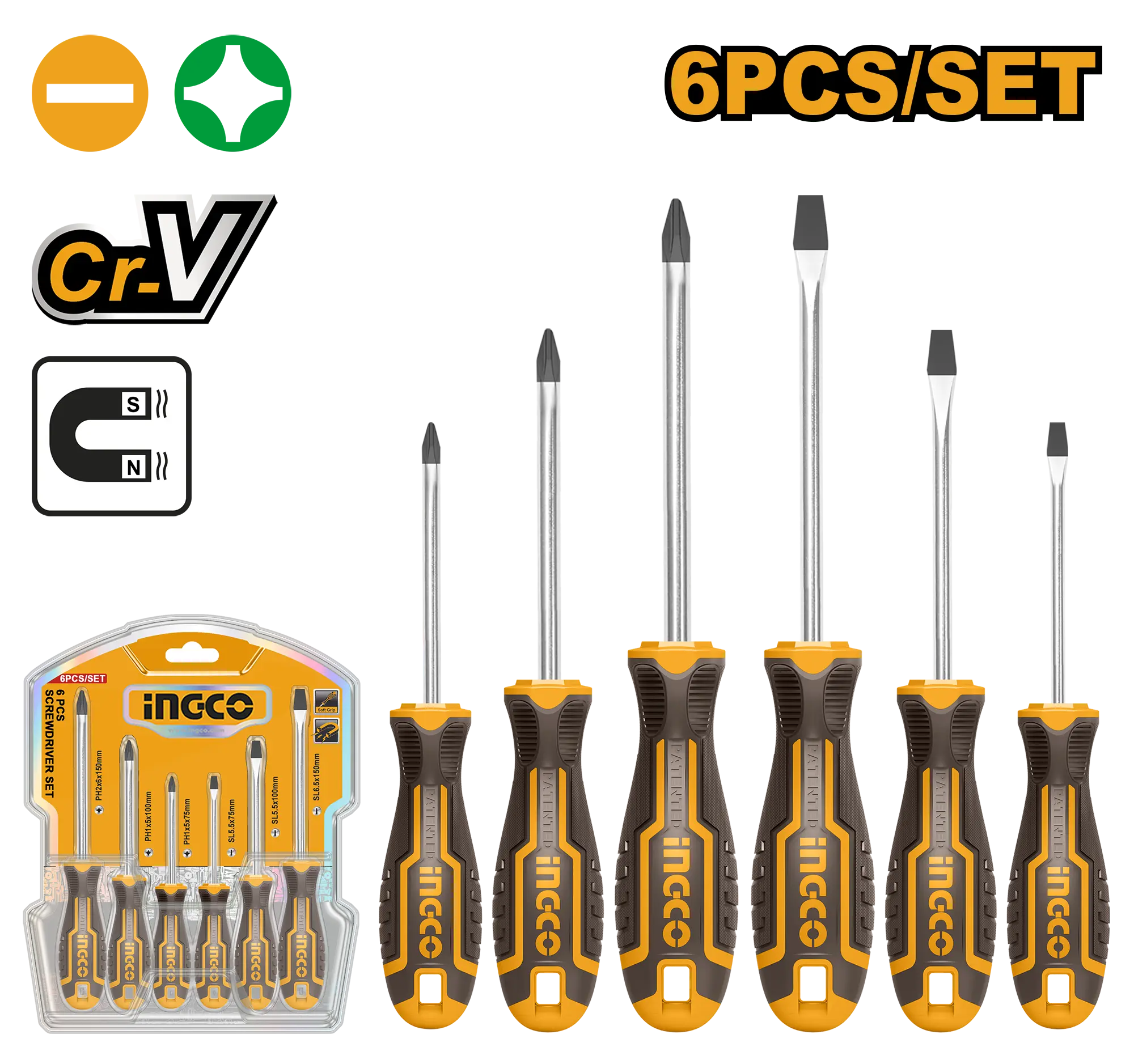 SET DESTORNILLADORES 6 PCS INDUSTRIAL INGCO es un producto dentro de la categoría Herramientas manuales. Marca detectada: Ingco. SET DESTORNILLADORES 6 PCS INDUSTRIAL INGCO es un herramienta manual orientado a uso práctico y seguro.