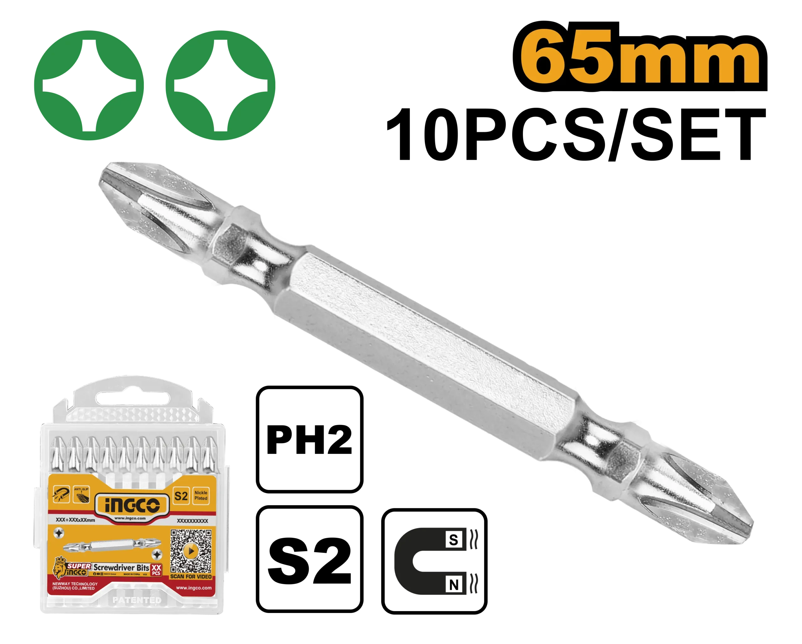 SET PUNTAS DESTORNILLADOR 2.5″ 10PCS (PH2) INGCO