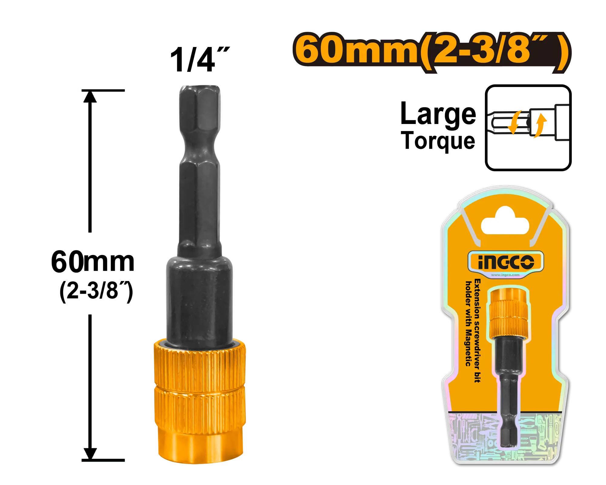 SOPORTE DE PUNTAS DESTORNILLADOR CON DESBLOQUEO 60MM INGCO es un producto dentro de la categoría Accesorios para herramientas. Marca detectada: Ingco. Herramienta manual para ajuste, sujeción o corte con control. Datos detectados: Medida: 60 mm.